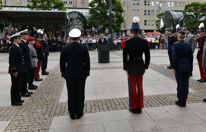 Ein ganz besonderes Erlebnis war es dieses Jahr für die Studierenden der Helmut-Schmidt-Universität/Universität der Bundeswehr Hamburg (HSUHelmut-Schmidt-Universität/UniBwUniversität der Bundeswehr H) - denn ihr Beförderungsappell fand in diesem Jahr am ersten Veteranentag statt. Der Beförderungsappell mit seiner Paradeaufstellung von rund 2.000 Soldatinnen und Soldaten und Offizieranwärterinnen und Offizieranwärtern der französischen Streitkräfte ist das größte jährlich stattfindende militärische Zeremoniell der Freien und Hansestadt Hamburg.